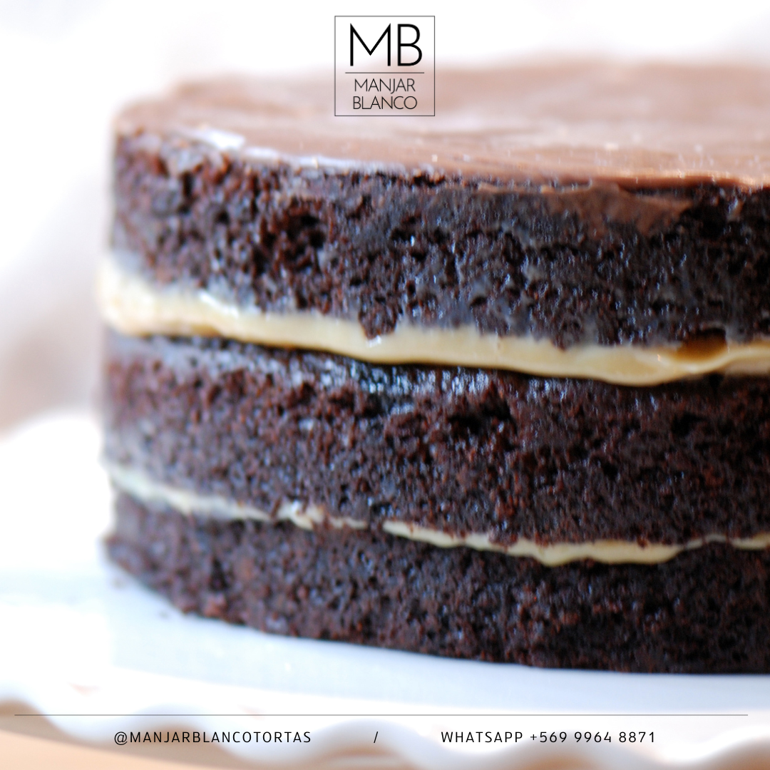 Disfruta nuestra torta de bizcocho de chocolate, hecha con capas suaves y húmedas de Bizcocho de Chocolate, rellenas con nuestro manjar para un sabor equilibrado y delicioso.