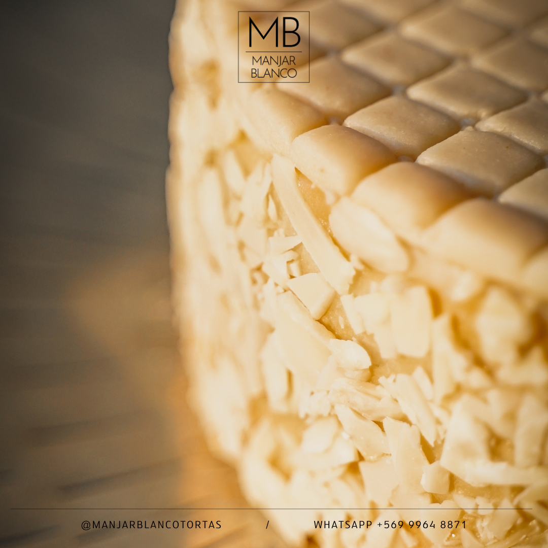 Experimenta el sabor único de nuestra torta de mazapán y manjar, compuesta exclusivamente de capas suaves y deliciosas de mazapán artesanal, alternadas con un generoso relleno de manjar cremoso.